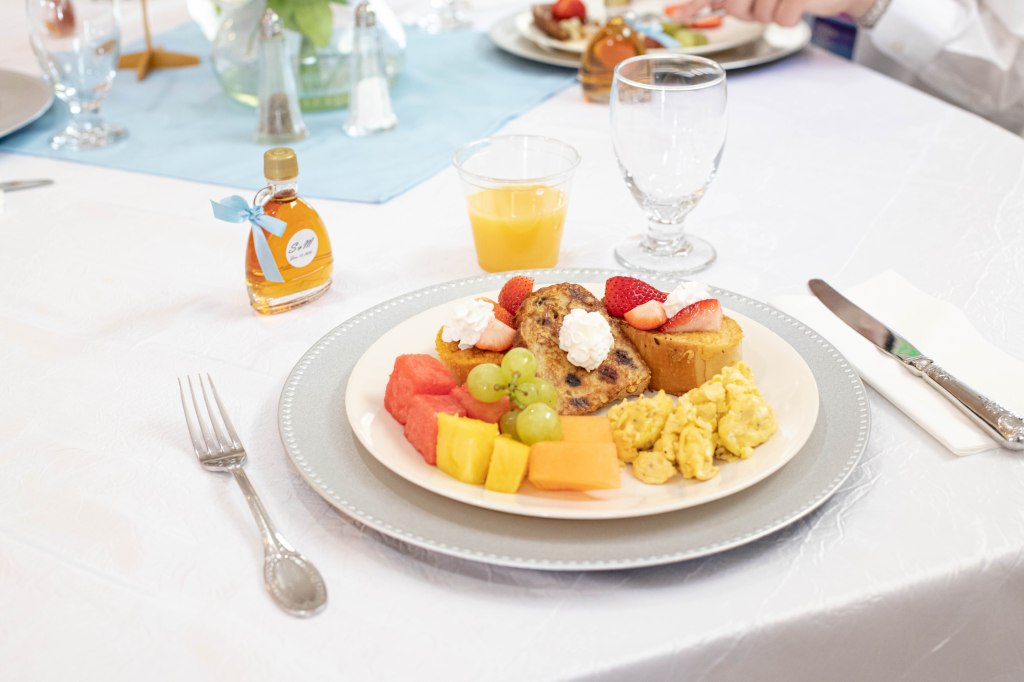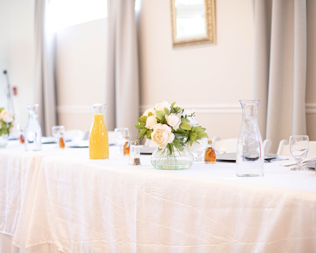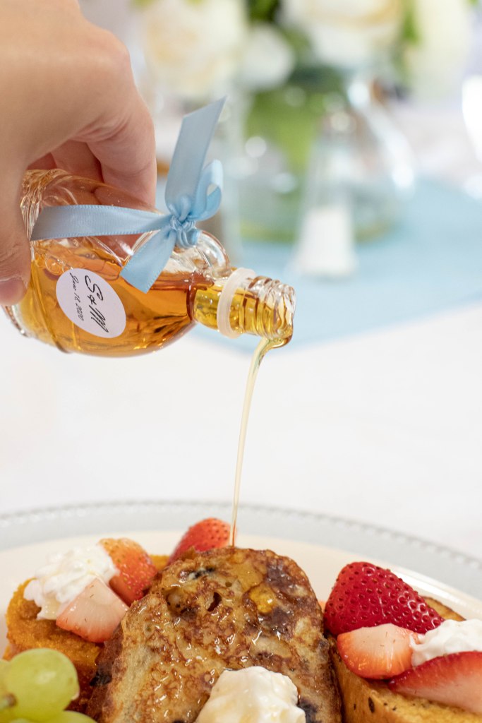 Steph’s family came out from Ohio, where they have their own maple tree farm and make their own maple syrup. So, for her wedding, Steph’s dad flew out with a suitcase full of these little individual syrup bottles. He said that he got a lot of weird looks in security, but let me just say… It was worth it! The syrup was SO GOOD! It paired perfectly with the delicious french toast and other brunch fixings from the wonderful Clarion Gardens. I am always so impressed with their delicious catering!